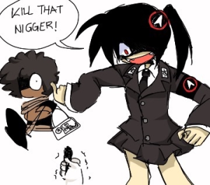 On September 23th, 2025, an anonymous user posted a picture of his "girlfriend's"[1] art of herself convincing OP to shoot a nigra. The thread had alot of mixed discussion about his probably fake "infact a trad catholic Christian" chinkfriend that he's dating.